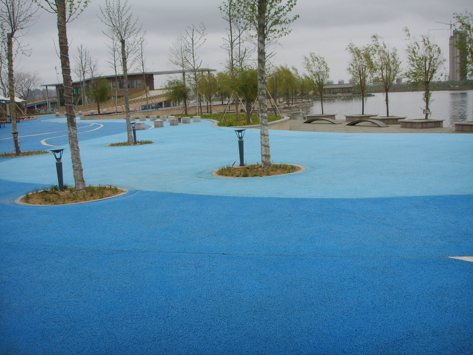 彩色透水地坪是一种新型的环保地坪,它拥有约20%孔隙,下雨时能够快速补充城市地下水资源,并能吸收车辆行驶产生噪音,能减少地面阳光反射热能,降低地面温度,减少“热岛效应”。